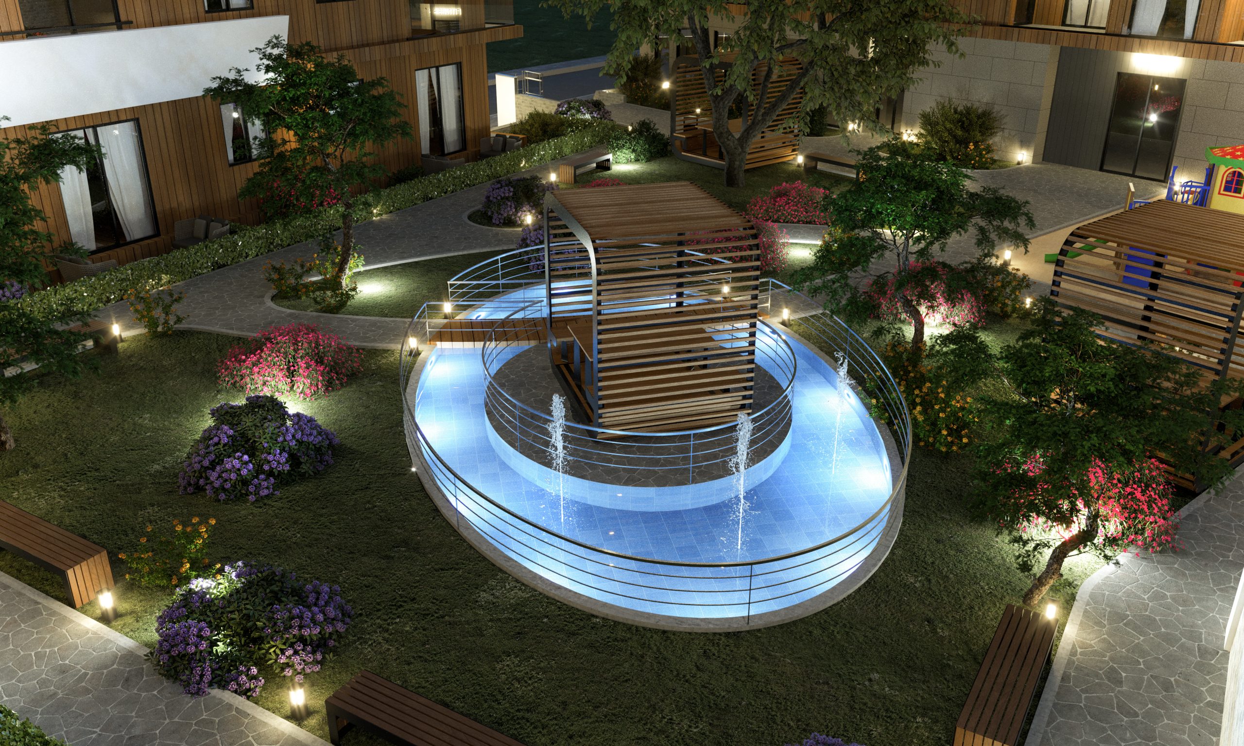 Peyzaj alanları, yürüyüş yolları ve çocuk oyun alanlarıyla, doğayla iç içe huzurlu bir yaşam sunulmaktadır.